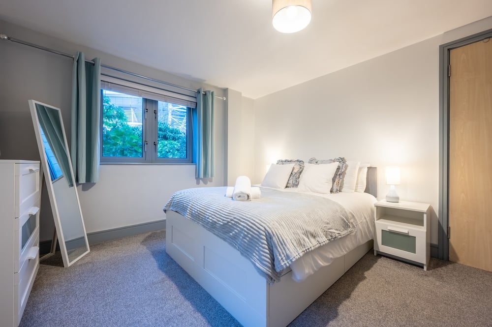 Welcome to our listing of Millennium Embankment. A one bedroom apartment ideally located in close proximity to Cardiff city centre. Located just a stones throw away from the Principality Stadium, this property enjoys a large fully functioning kitchen & dining area complete with everything you need to enjoy your stay. The lounge area is beautifully furnished and includes a smart TV with all the popular apps and complimentary superfast WiFi. Lots of light is allowed into this space from the patio doors that lead to a small outdoor area. There is one large double bedroom that boasts a comfortable double bed and ample storage for your belongings. The additional sleeping space is a sofa bed in the living area that will comfortably sleep 2 additional guests. There's one full bathroom in the apartment with bath and shower facilities as well as an en-suite bathroom with a walk in shower as well as all the other amenities you should expect. Guests can benefit from a designated parking space but please be sure to display the permit on your dashboard once parked! Please note: Our accommodation is thoughtfully set up with comfort and practicality in mind, making it ideal for guests working or studying locally rather than those seeking a luxury stay. That said, we hope you’ll find it a pleasant and welcoming space. As with many homes in the UK, you may occasionally spot a friendly spider during your stay.